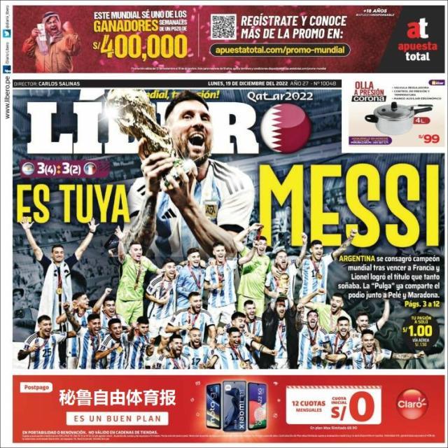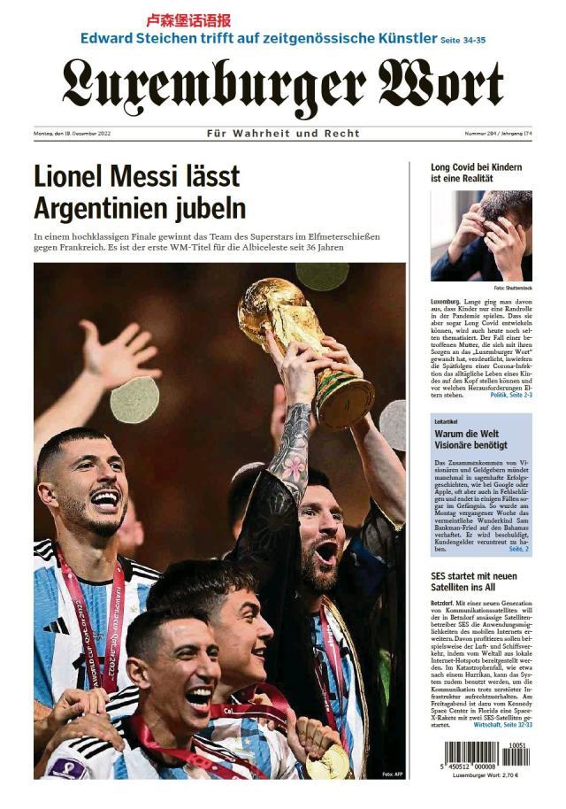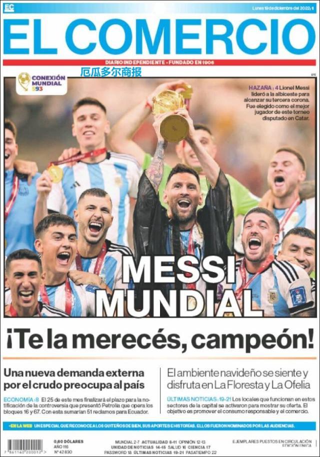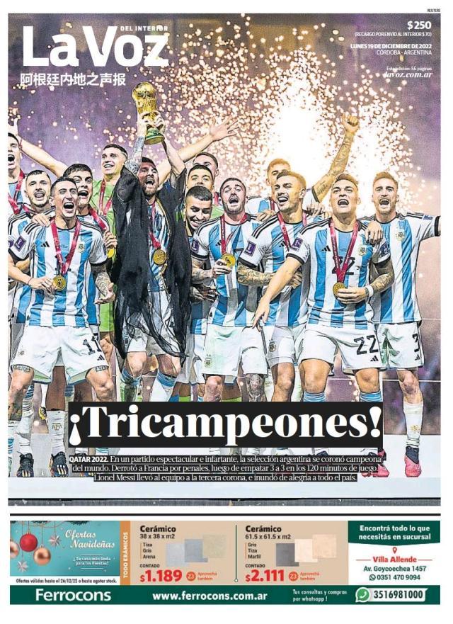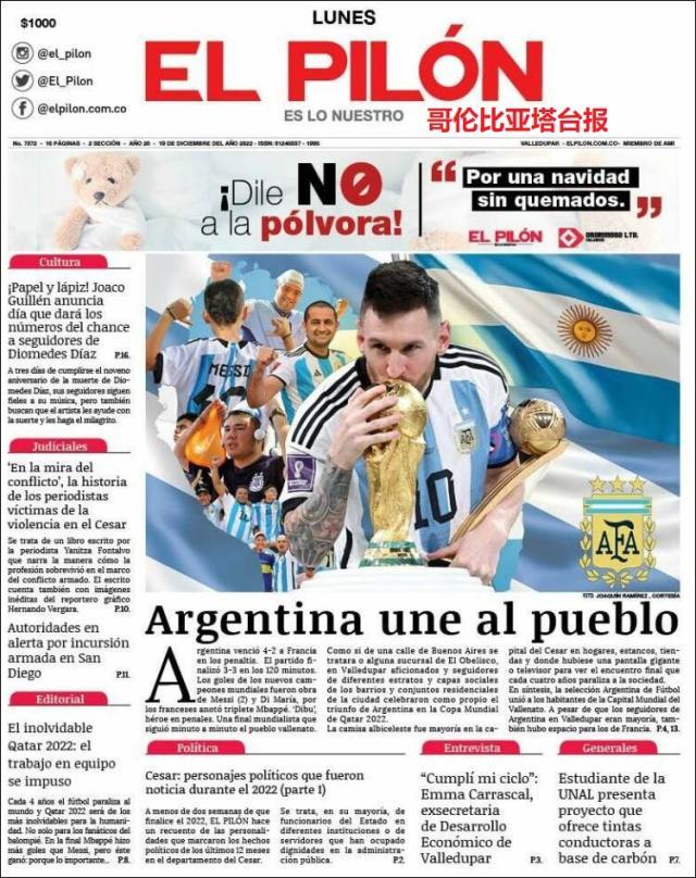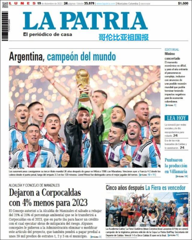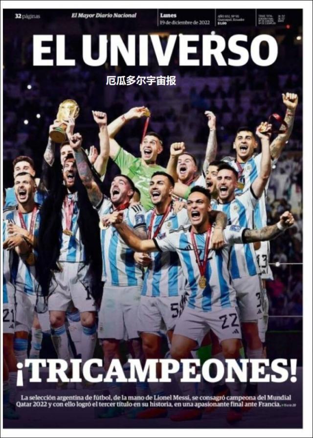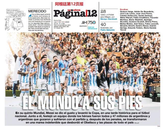 这是全世界近200家报纸在阿根廷夺得世界杯冠军后的封面。一位足球明星和他的球队接受举世礼赞,这在传媒史上实属罕见。