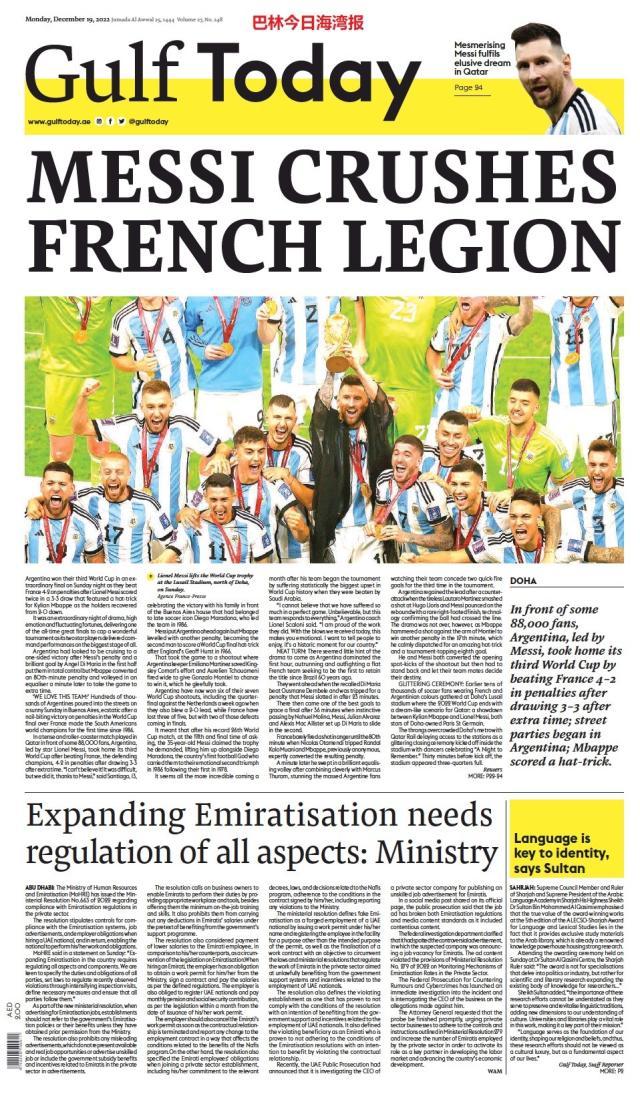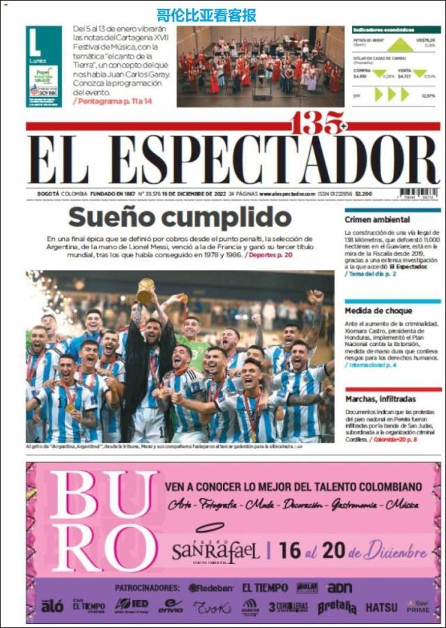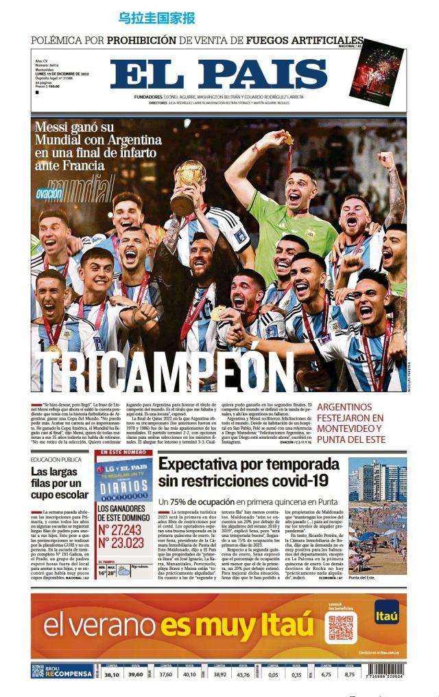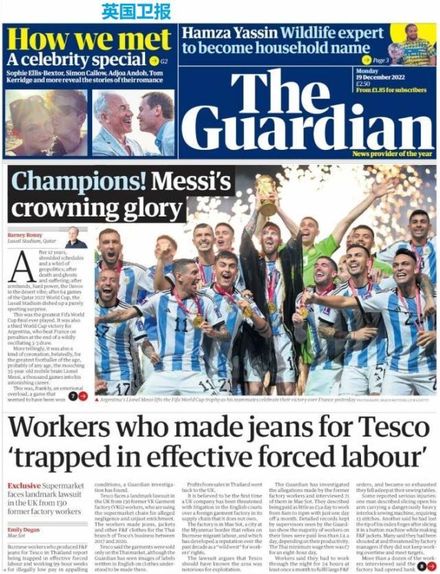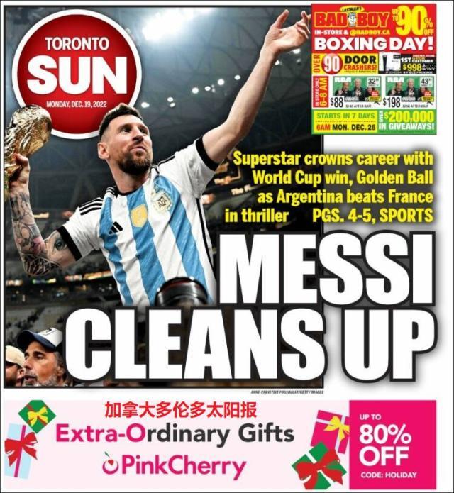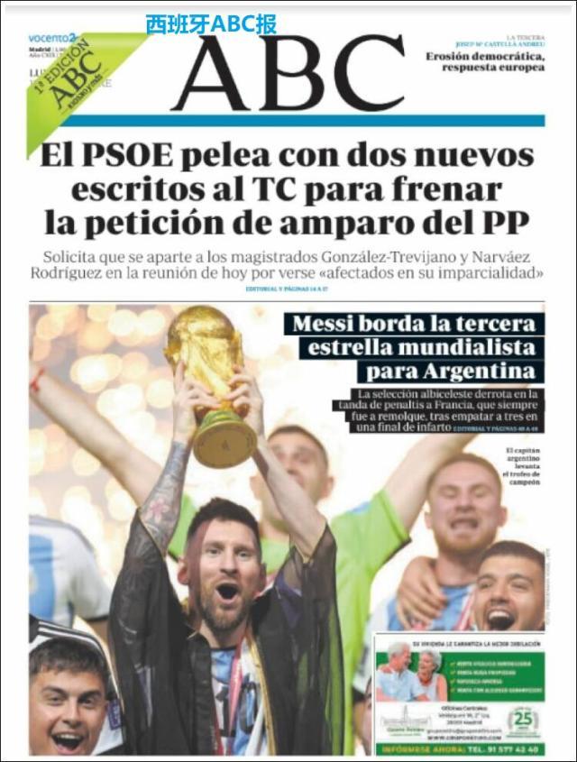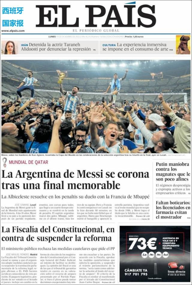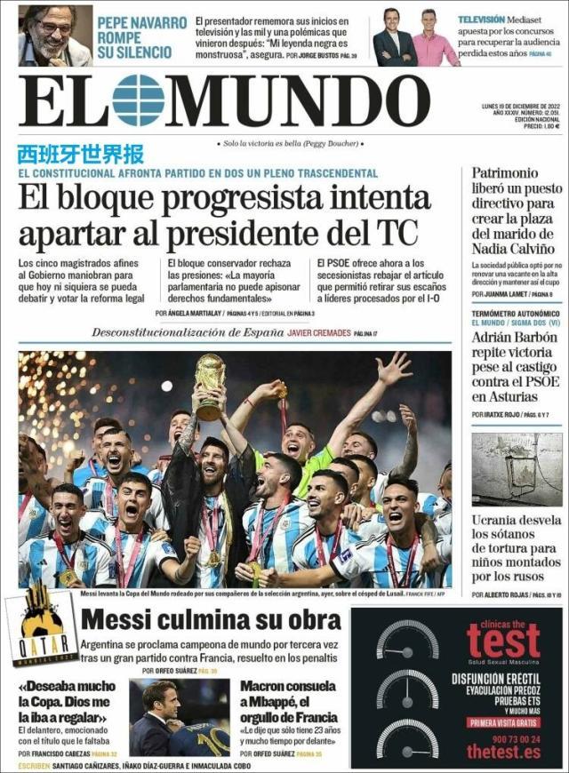 这是全世界近200家报纸在阿根廷夺得世界杯冠军后的封面。一位足球明星和他的球队接受举世礼赞,这在传媒史上实属罕见。