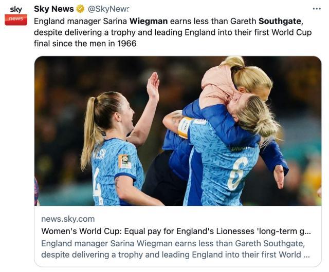索斯盖特的合同到明年欧洲杯结束,而维格曼的合同到2025年,历史性打进世界杯决赛后,后者续约应该问题不大。如果让维格曼接替索斯盖特,还有一个好处是足总或许能省下不少钱。南门目前的年俸为400万英镑,而维格曼只有1/10。有传言称,美国女足打算在世界杯后挖三狮墙脚,他们的教练安东诺夫斯基刚在周四宣布辞职,贝林厄姆对此断然否决,“100%拒绝任何对萨里娜的报价”。